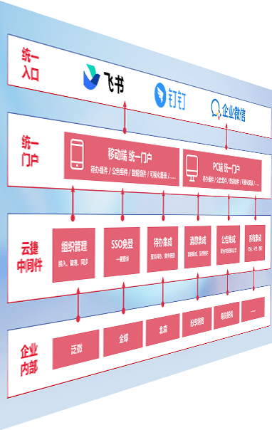 对协作平台提供支持服务,,,支持企业应用与协作平台对接,,包含组织同步、、、消息集成、、、待办集成等。。。。支持目前主流的协作平台:钉钉、、企微和飞书。。。。